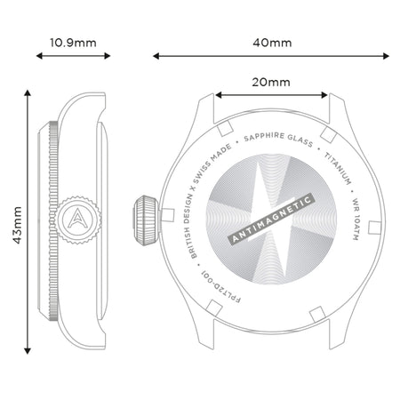 Flight Case - The watch has a versatile 40mm titanium case with short lugs and a height of just 10.9mm, so it’s a great fit on the wrist. The case of the Curtis has been given a navy blue PVD coating to match the dial. As the case is made from titanium, the watch is 25g lighter than the Pilot Series I.