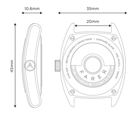 Vapour Coated Rotor - In a first for Farer, the movement’s winding rotor has been vapour coated to match the dial colour.