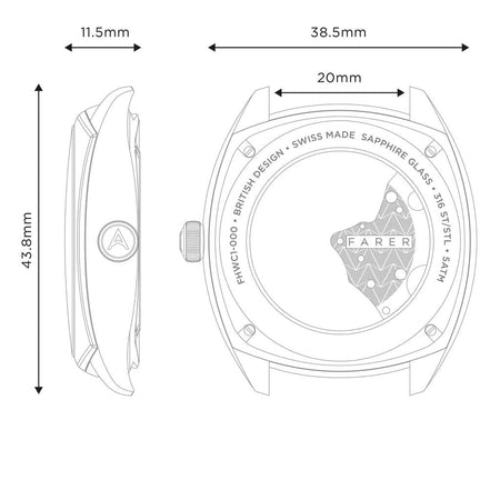 Manual Drive - The watches in the Moonphase collection are powered by a Swiss-made Sellita SW288-1 Ma Elaboré Grade movement. This hand-wound calibre is highly decorated, with blued screws, snailed finishing, and a bespoke Farer embossed patterned bridge. All of which can be viewed through a sapphire case back.