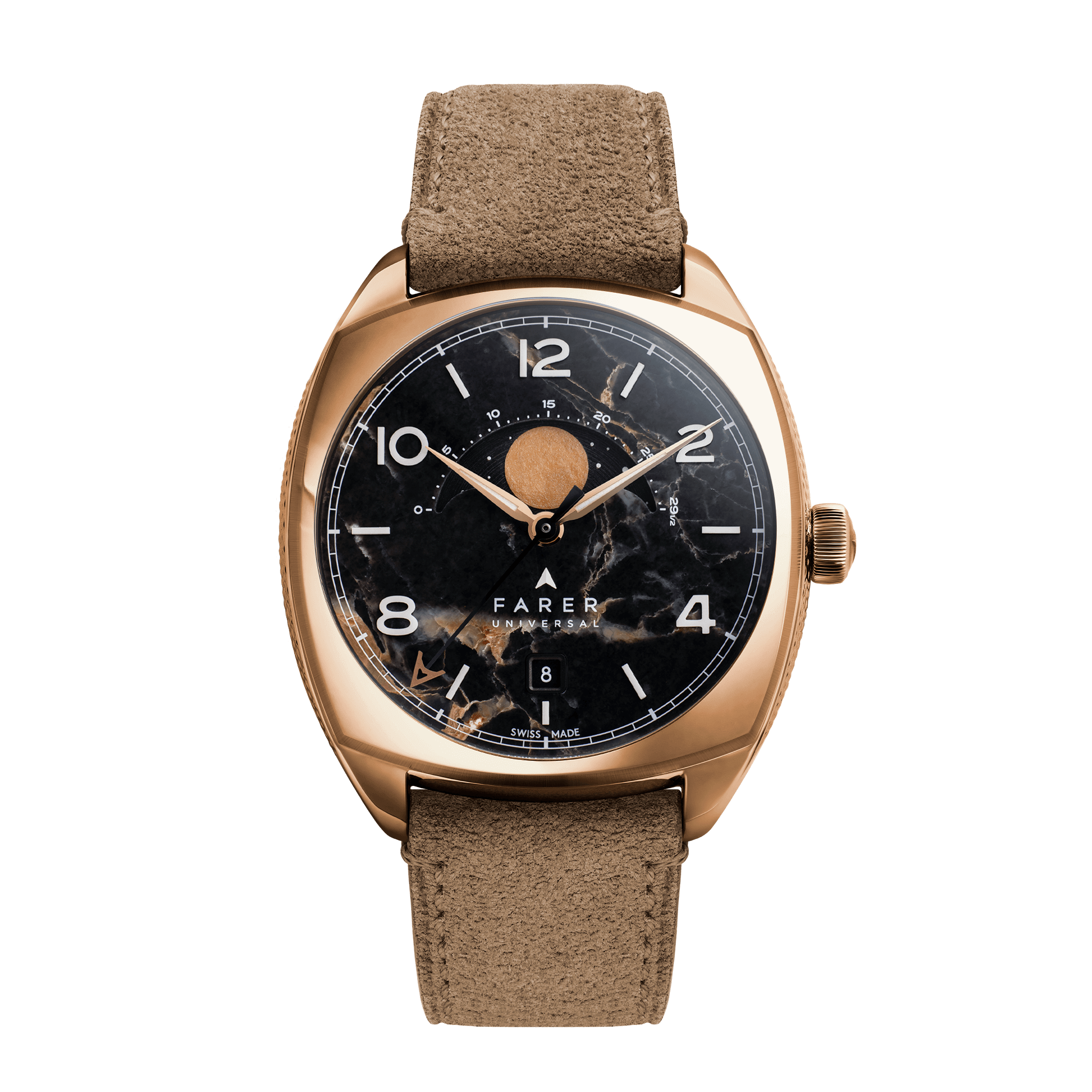 With its striking blend of warm gold tones and the natural patterns of the Eisenkiesel dial, the Stratton makes for a bold new addition to the Moonphase collection, which exudes the luxury traditionally associated with the complication.